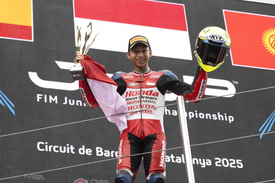 Pada akhir pekan lalu di Sirkuit Catalunya, Barcelona, pebalap muda asal Indonesia Kiandra Ramadhipa mencatat kemenangan yang pantas disebut gila. Bermain di ajang European Talent Cup 2025, Kiandra memulai balapan dari posisi ke-24—sebuah situasi yang sangat sulit bagi siapapun. Namun, ia tak gentar dan berhasil melejit melewati 23 pebalap lain hingga akhirnya finis di podium tertinggi.